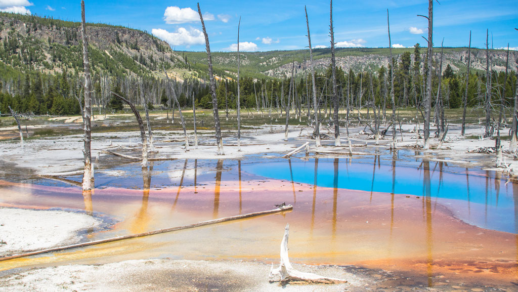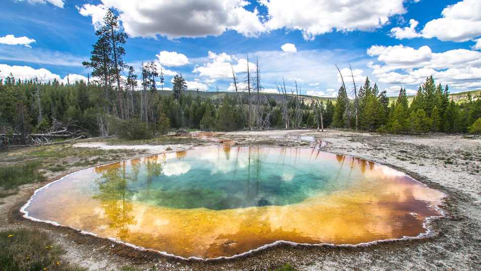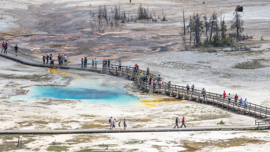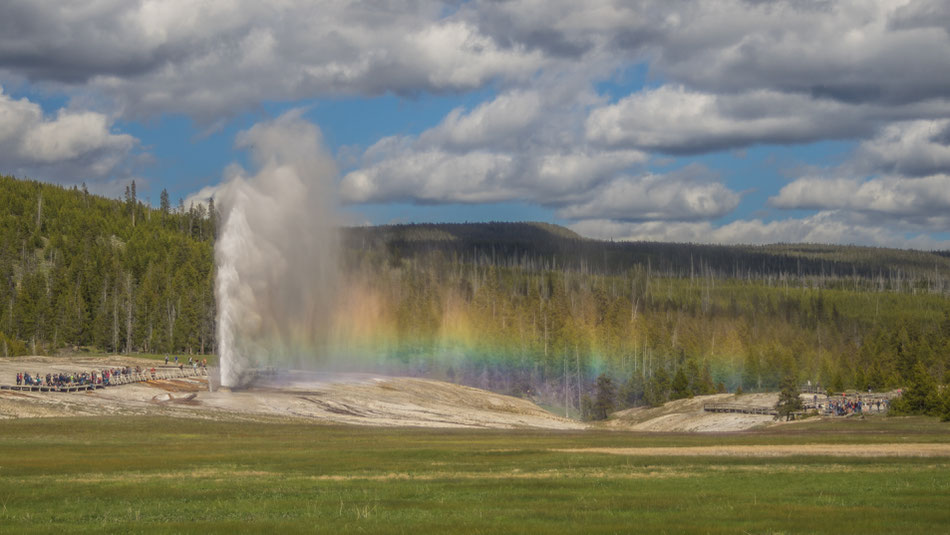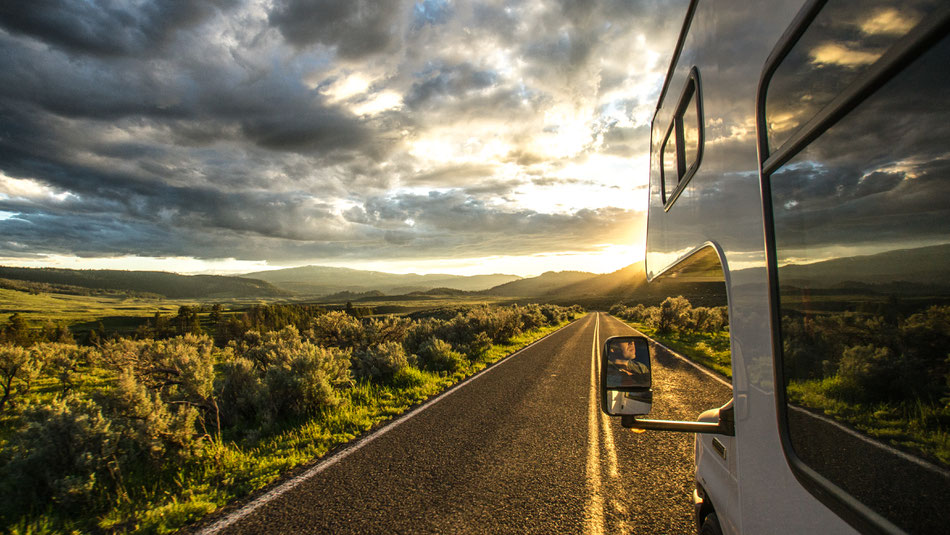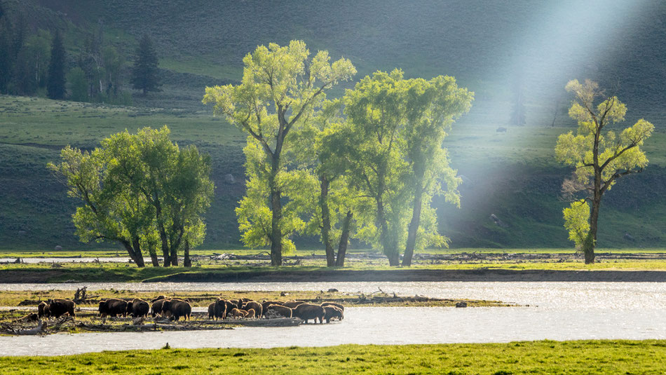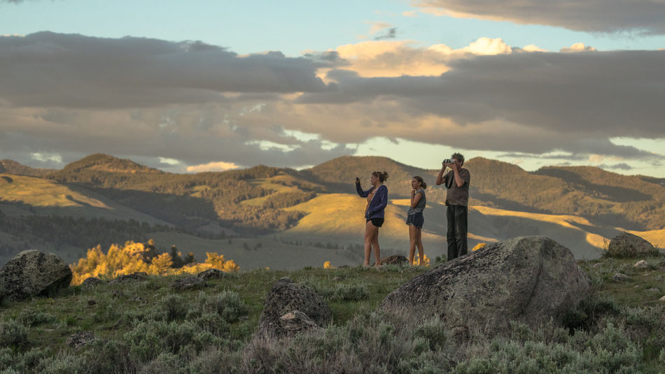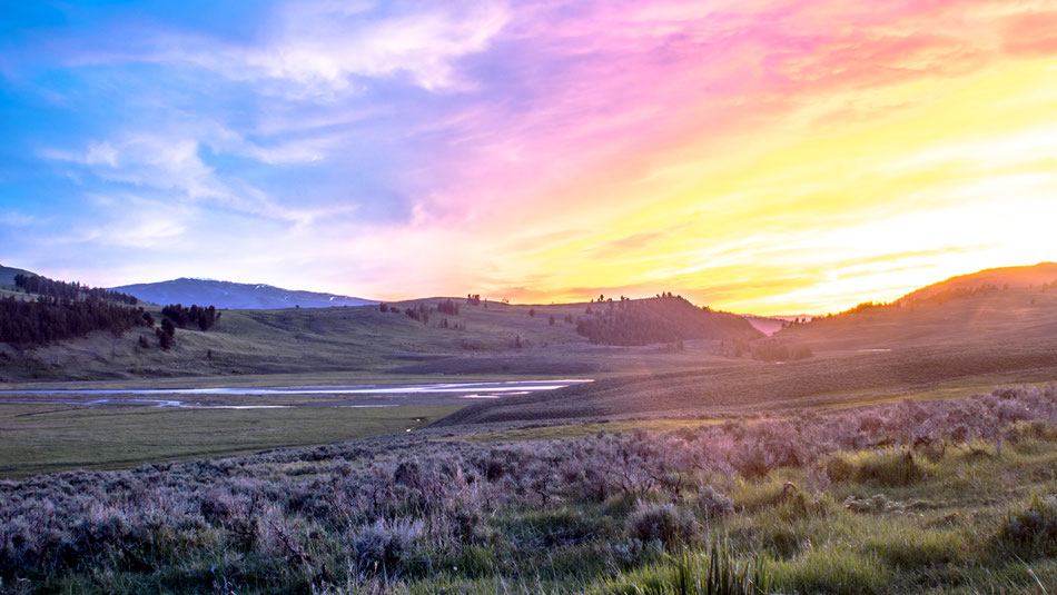 Die Tage im Yellowstone National Park haben wir verbracht mit Wanderungen an Geysiren vorbei, über grüne Felder bis auf atemberaubende Aussichtspunkte. Und bei Abendrot fuhren wird mit Feldstecher, Campingstühlen und Kamera Ausrüstung bewaffnet durch den Park um Tiere zu beobachten. Abendessen gab es mit Aussicht auf Büffelherden, und bei der Heimfahrt genossen wir bezaubernde Sonnenuntergänge in Orange,Pink & lila.