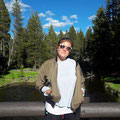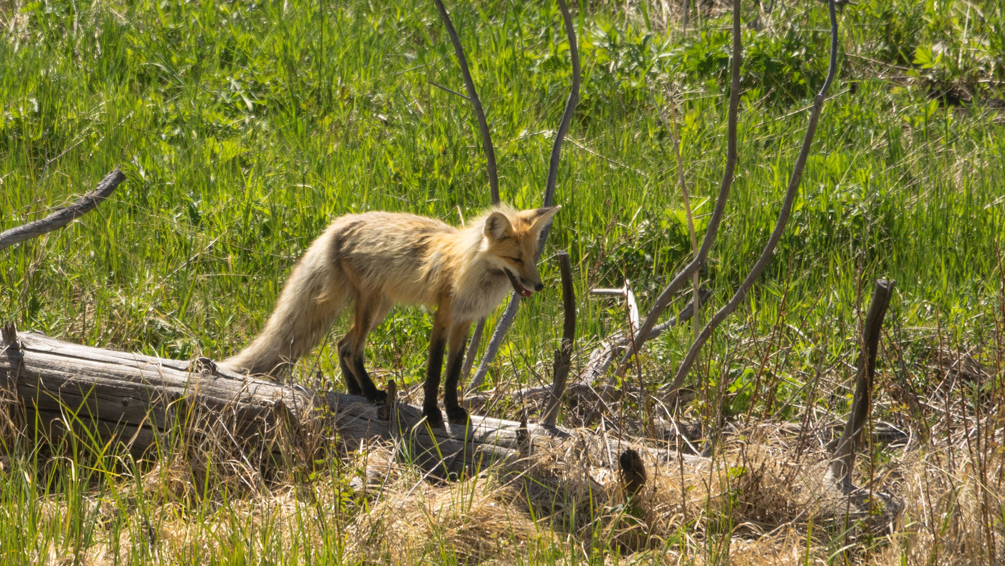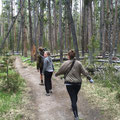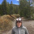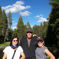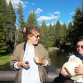HR, Raffi und Elin machten sich zu Fuss auf den Weg, schon nach 2 Minuten fanden wir stehende Autos vor, alle mit Kameras, Feldstechern und strahlenden Gesichtern aus den Fenstern. Alle beobachteten einen kleinen Kojoten auf seiner Jagd nach Mäusen. Nach etwa 30 geschossenen Bilder konnte auch Raffi sich von dem Tierchen lösen. Beim Baum angekommen war die Begeisterung nicht gross. Nach einem Foto wollten wir wieder zurück, doch hinter 2 grossen dunkelgrünen Tannen führte ein einsamer Waldweg in ein kleines lichtgrünes Tal. Da wir durchaus genügend Zeit hatten, folgten wir diesem magischen Weg immer Tiefer in die Natur.